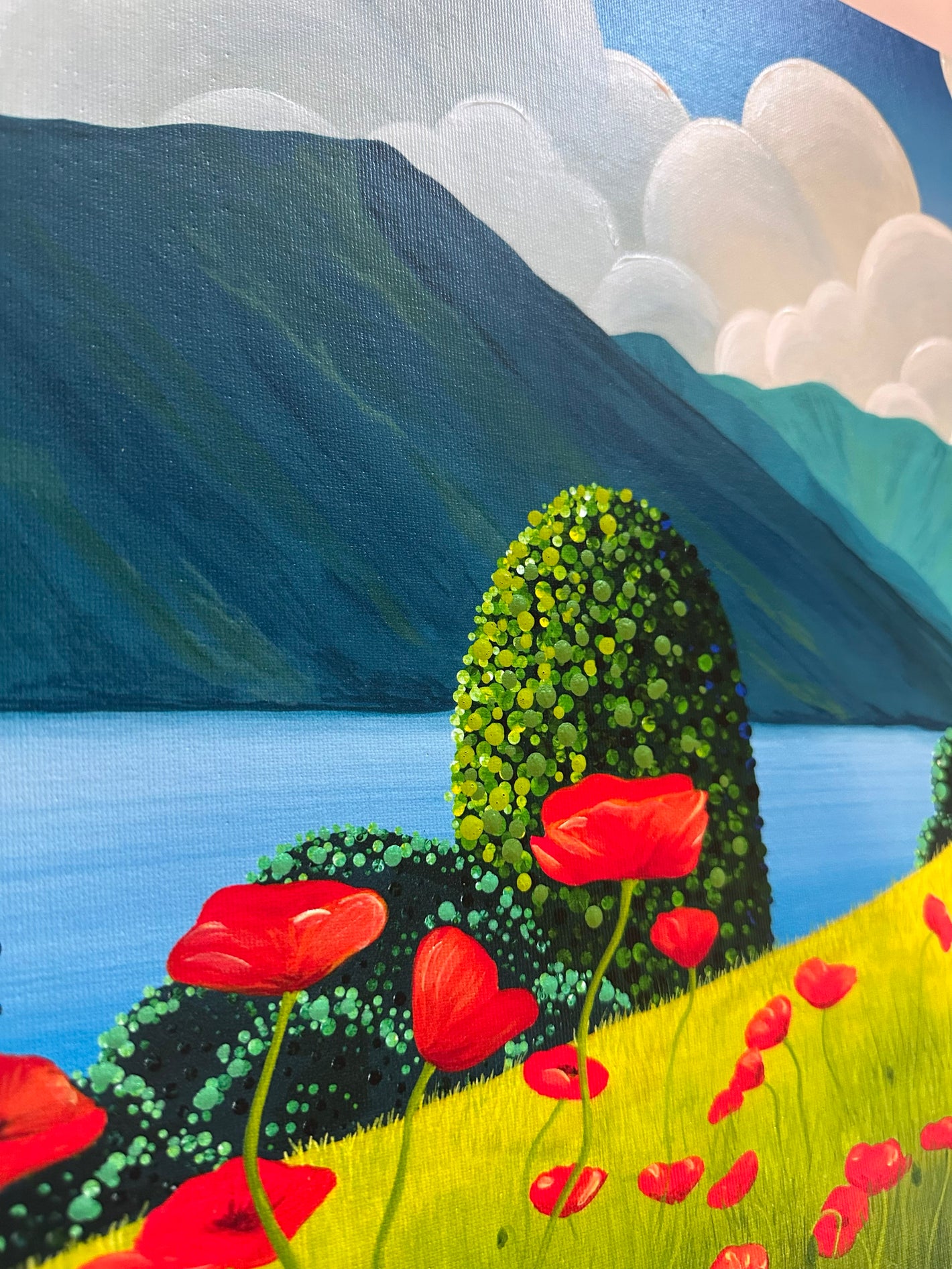 An Artist-Enhanced Canvas Giclee is a print that is reproduced from an original painting. It is printed on professional grade canvas with the very best pigment based inks. Next, the canvas is mounted to a solid 7/8” wood panel. I then paint on top of the canvas giclee adding my own personal brush strokes throughout the painting. Finally it is signed and varnished. If you are interested in having a custom made wood float frame for your new piece of art, please contact me for options and pricing.
