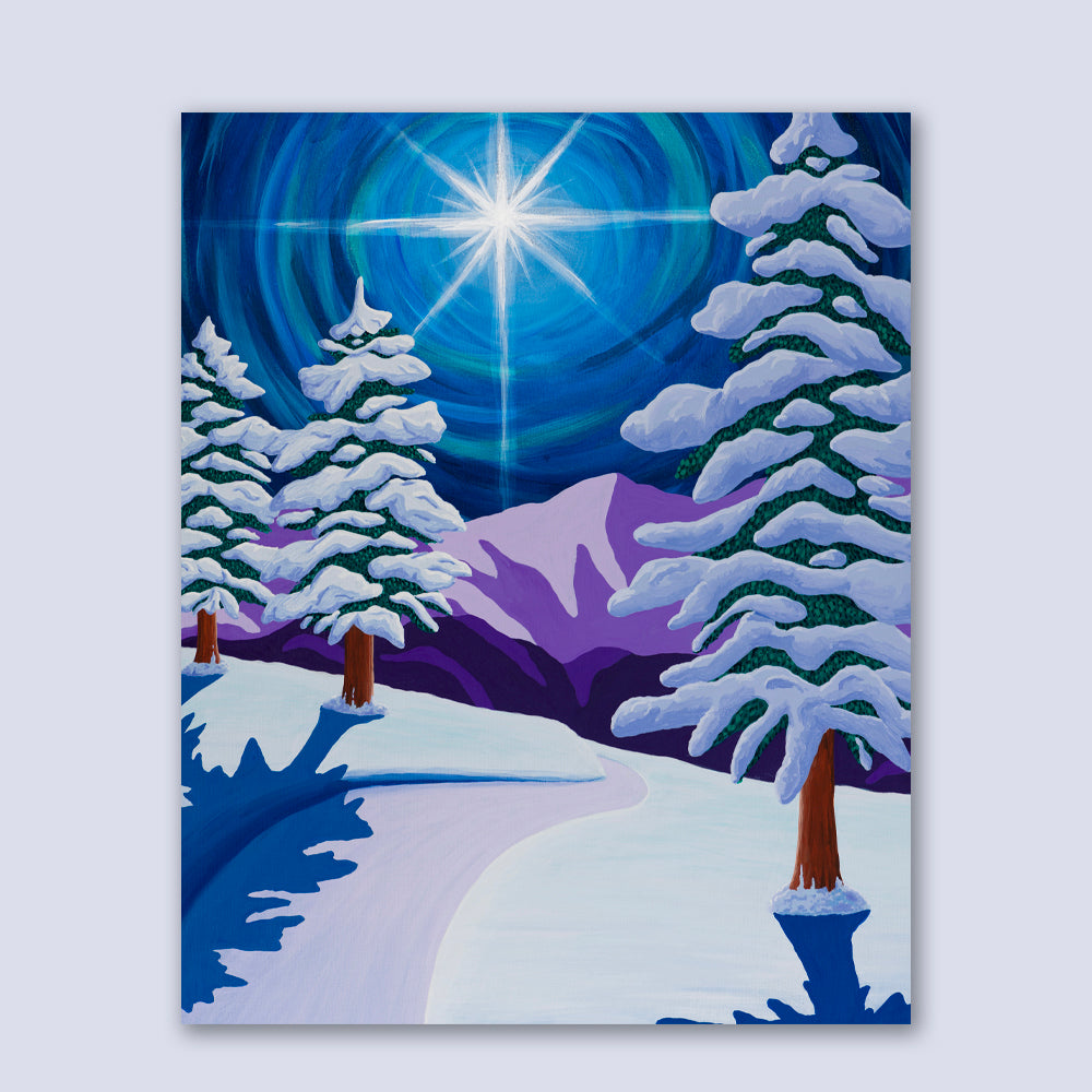 This winter star shines brightly on a snowy scene in Colorado.