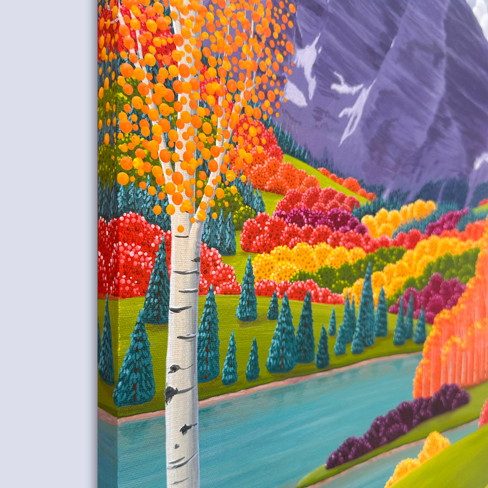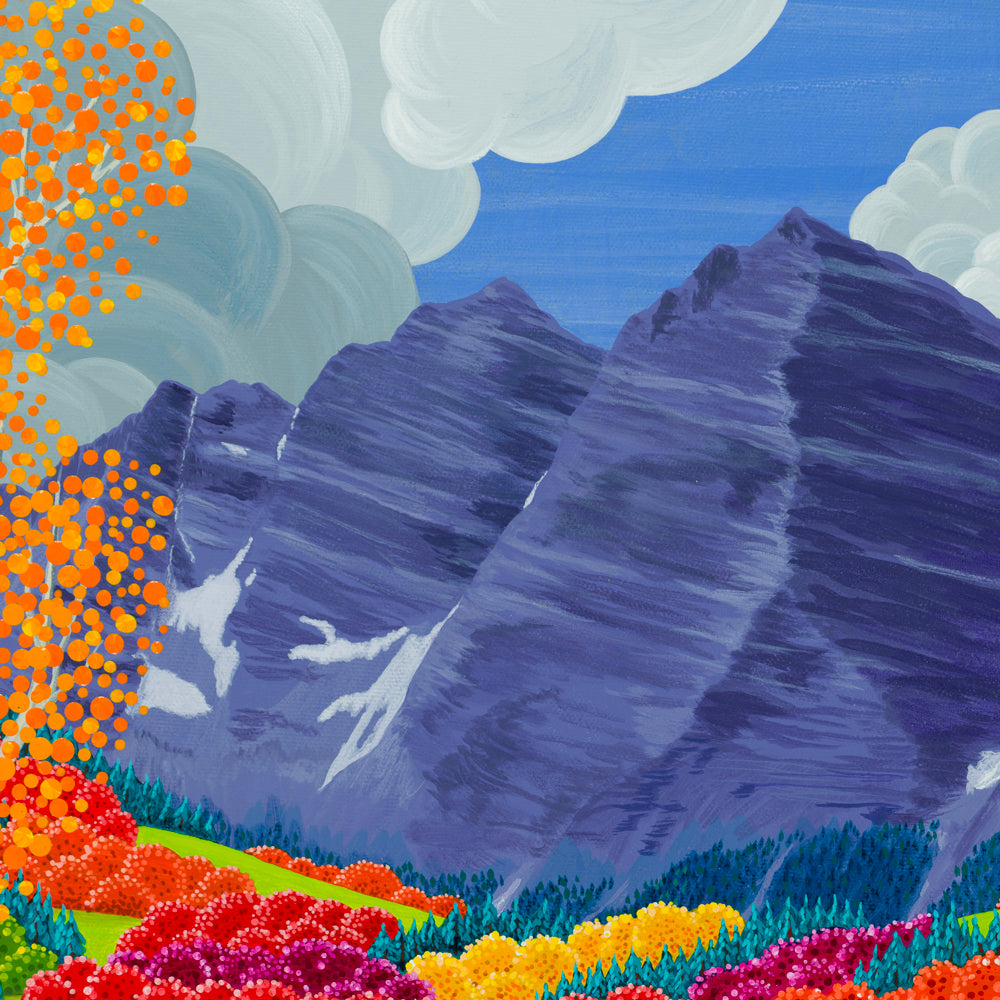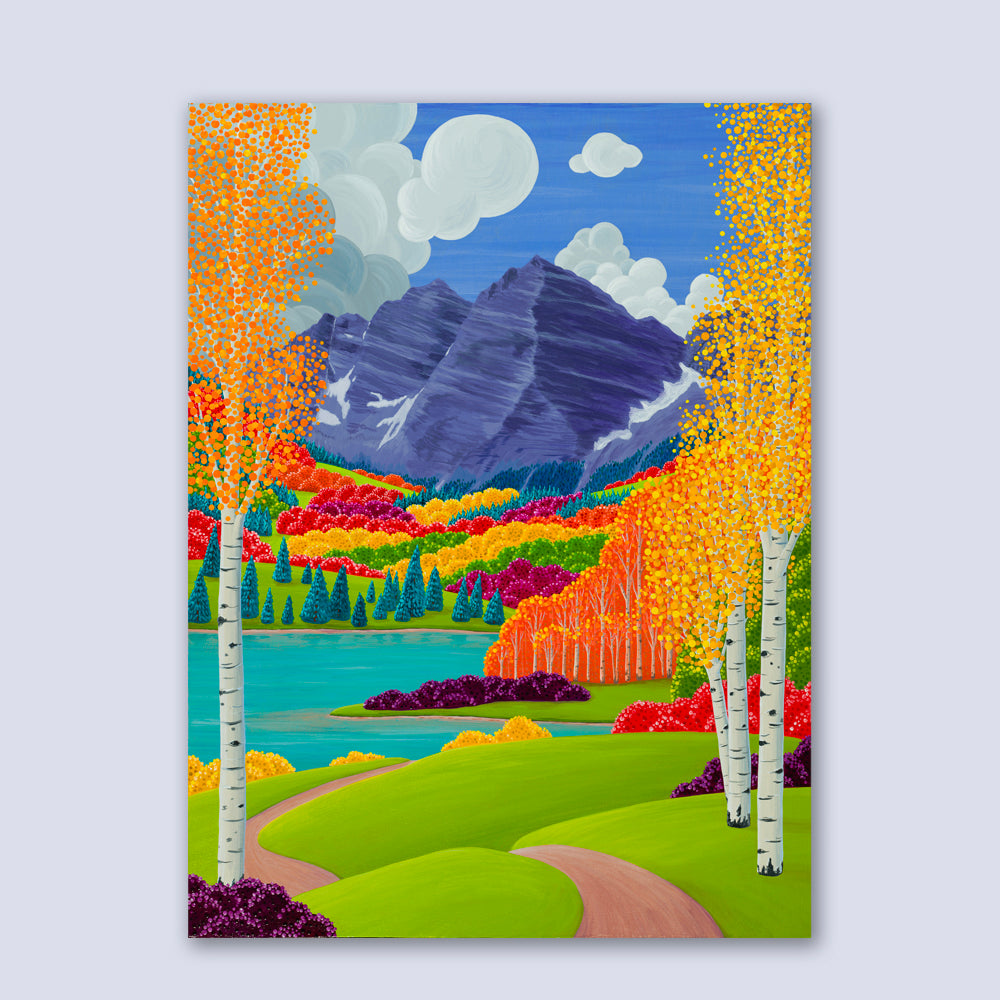 A magical Fall landscape of the Maroon Bells in Colorado. This piece was inspired by Psalms 65:8 "The whole earth is filled with awe at your wonders; where morning dawns, where evening fades, you call forth songs of joy."